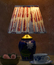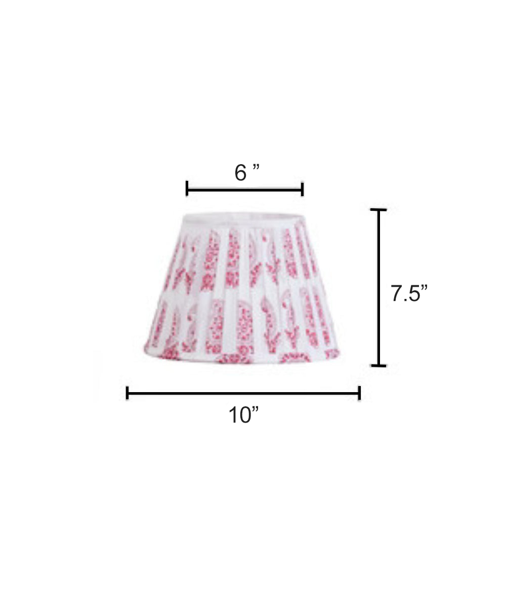 Brighten up your space with this charming handblock printed pleated lampshade featuring a delicate red paisley design. Crafted by skilled artisans, it adds a warm and inviting glow to any room. Perfect for bedside tables or living spaces, this timeless piece blends traditional craft with modern elegance, making your décor effortlessly stylish.