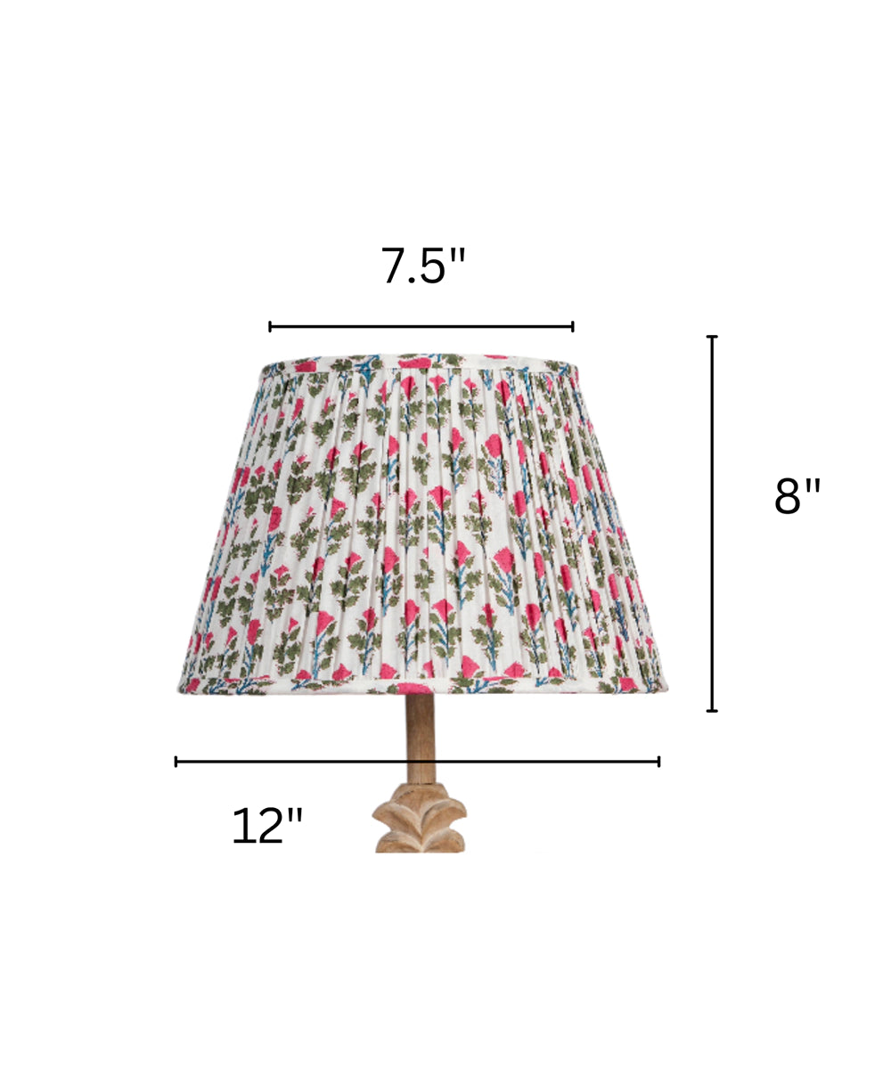 Illuminate your home with this white & pink block printed cotton lampshade, adorned with floral motifs. The design adds life and brightness, casting an inviting glow. Perfect for bedside tables, living rooms, or cozy corners, it blends traditional craftsmanship with timeless style, enhancing your décor with an artisanal touch.