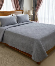 Blue Chambray Rhombus Hand Quilted Cotton Bedcover cum Comforter with 2 Pillow Covers