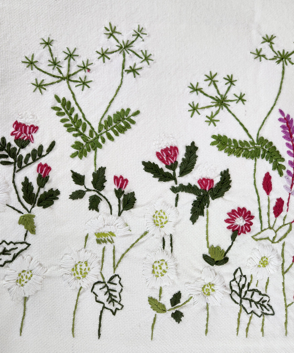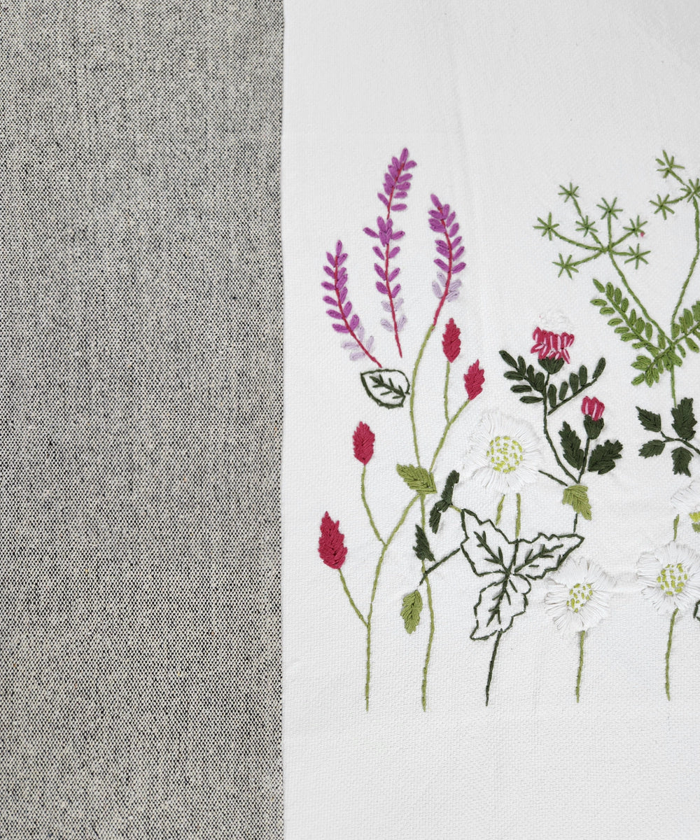 Ivory & Grey Hand Embroidered Cotton King Bedcover Set