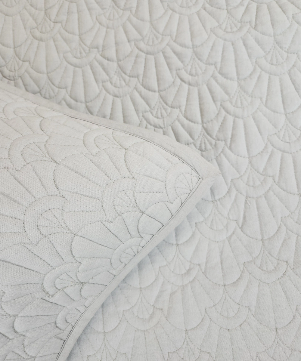 Light Grey Arc Floral Pattern Quilted King Bedcover with 2 pillow covers