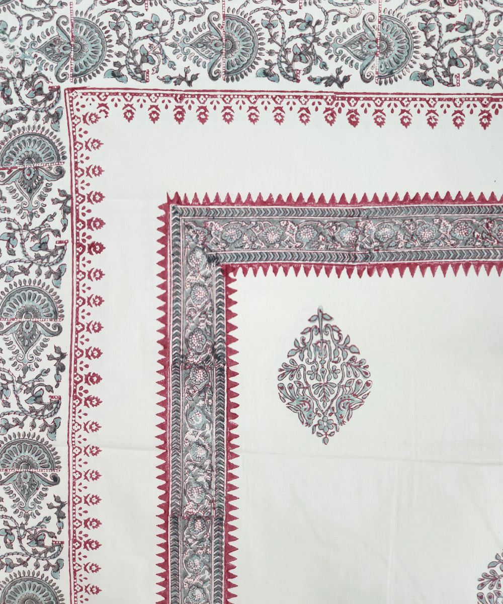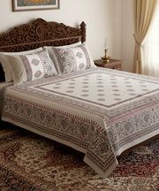 This exclusive block printed bedsheet is on super premium pure cotton 400 TC fabric with satin weave which gives it a little sheen.