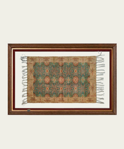 A celebration of color and craftsmanship — this printed textile wall art glows in turquoise, ochre, and rust tones with intricate mandala‑inspired motifs. The border’s delicate paisley design adds a layer of regal detailing, making it a striking focal point in any room.